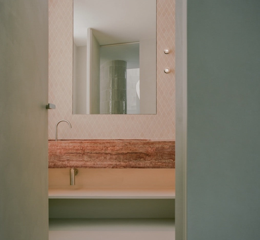 Hand-made terracotta diamond tiles specified for commercial and residential interiors, selected for material authenticity, pattern consistency and suitability for repeat supply.