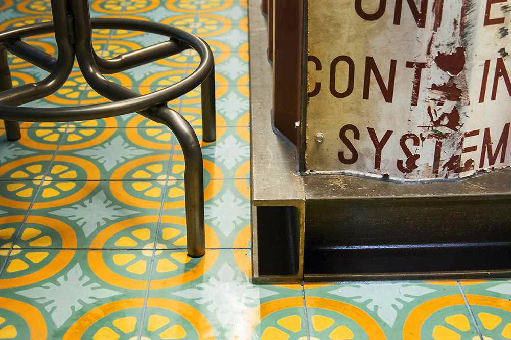 Alhambra worked with B3 Designers at very short notice to supply our beautiful T18 encaustic tile in a bespoke colourway for the cooking pit of Levi's wonderful new 'rasta-raunt' in Westfield, Stratford City. We even created a new colour especially for Levi and got the tiles to site in record time.