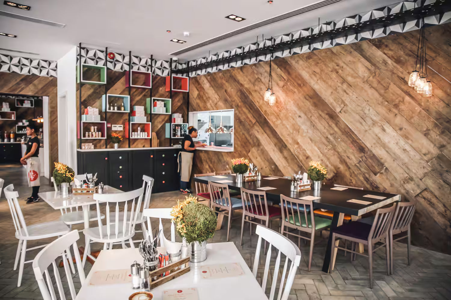 We were thrilled to supply the Paper Fig tea shop in Dubai with our T15 encaustic tile in striking monochrome tones. The sweet-toothed proprietors used it around the tops of the walls to great effect.