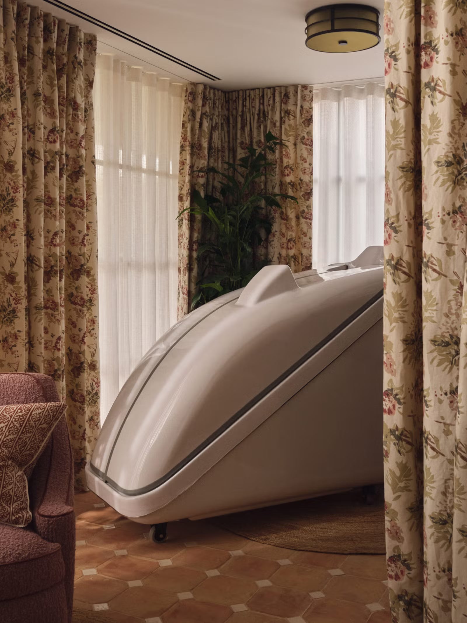 Alhambra was approached by senior designers at Soho House Design for hand-made terracotta octagons with ivory inset "tacos". The renovation of Soho Farmhouse, Chipping Norton, included the creation of the Wellness Barn and our terracotta was chosen to enhance the space’s serene and stylish atmosphere. The design and material choices reflected the retreat’s rustic luxury aesthetic while creating a calm, inviting environment for guests.