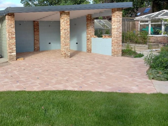 Hand-made terracotta pentagon tiles were supplied for a garden patio project in Berkshire which was part covered with an awning. The tiles were used throughout the space, selected for their suitability and natural surface variation, resulting in a durable and very characterful floor.