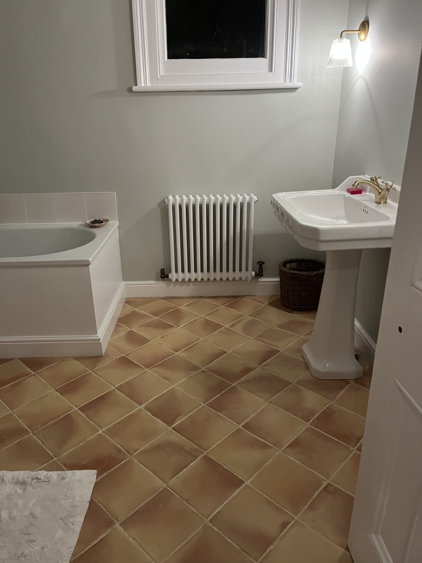 Hand-made terracotta square tiles were supplied for a residential bathroom renovation. Following a review of material and layout options, terracotta was selected for its suitability for the space and its natural surface character.