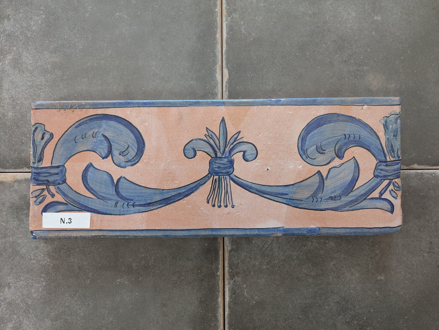Handmade in Valencia, these terracotta wall tiles are individually hand-painted with a simple yet elegant design.