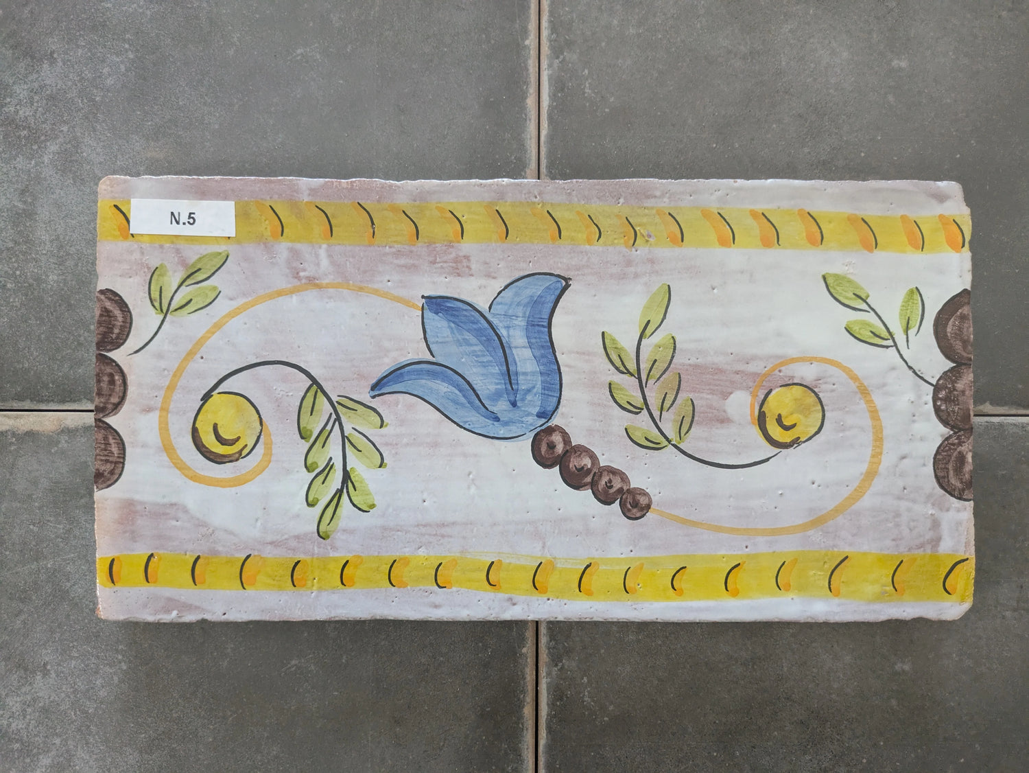 Handmade in Valencia, these terracotta wall tiles are individually hand-painted with a simple yet elegant design.