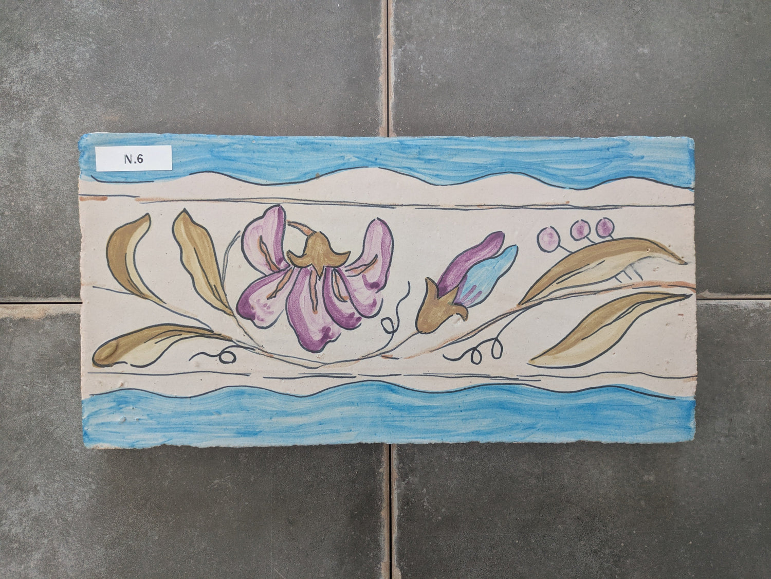 Handmade in Valencia, these terracotta wall tiles are individually hand-painted with a simple yet elegant design.